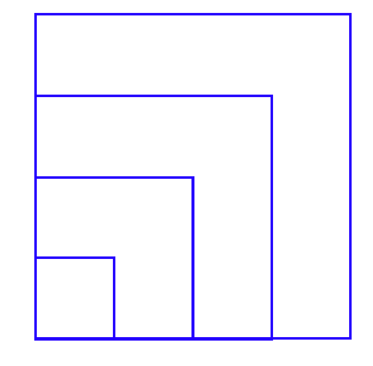 2. Proposer également une version de ce dessin où on construit les carrés intérieurs « à l'infini », en tous cas tant qu'ils sont visibles !