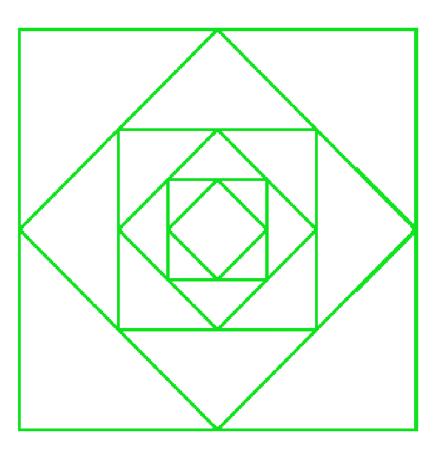 1. Tracer le carré extérieur de côté, puis tracer les n carrés intérieurs dont les sommets sont placés sur les milieux des côtés du carré précédent.